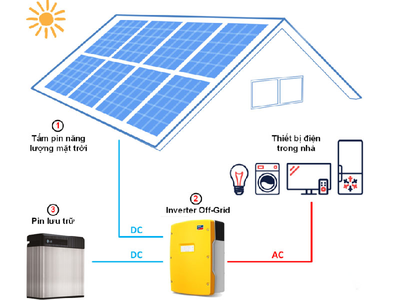 - Đặc điểm: Không kết nối với lưới điện, hoạt động hoàn toàn nhờ năng lượng từ mặt trời và pin lưu trữ.